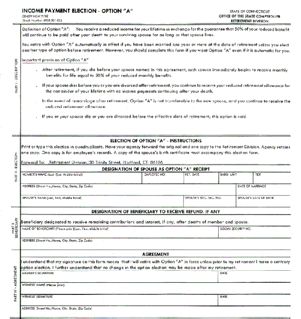 CO-899 Income Payment Election - Option "A" REV. 7/87