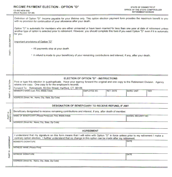 CO-902 Income Payment Election - Option "D" -REV. 6/95