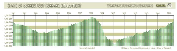 12-month period ending in June; Connecticut's employment growth was 1.6 percent