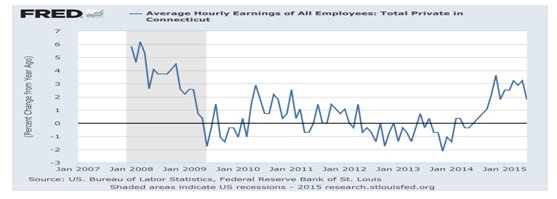 private-sector wages in Connecticut. Wage growth was exceeding 6 percent as the
