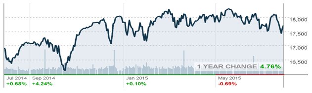 • Over the past 12 months, the Dow has posted a gain of 4.8-percent with significant monthly swings.