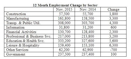 November, bringing payroll employment to a level of 1,699,700. October’s