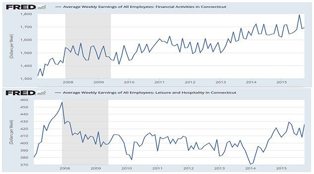 At the same time, the leisure and hospitality sector that pays wages that are 46