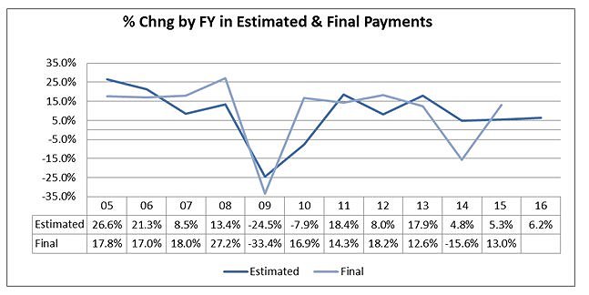 • In Fiscal Year 2015, 44 percent of total estimated payments were collected in