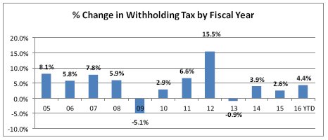 Through November, year-to-date withholding was up 2.3 percent. New tax rate