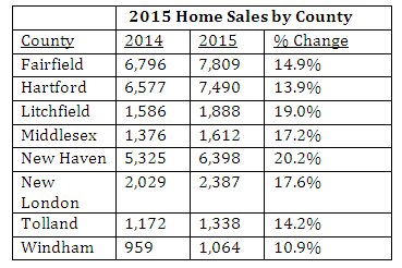 • According to a Feb. 11 release by the Warren Group, Connecticut recorded 2,588 single-family home sales in December 2015, the largest sales total for the month since 2006. The December sales volume was 17.9 percent higher than the same month last year.