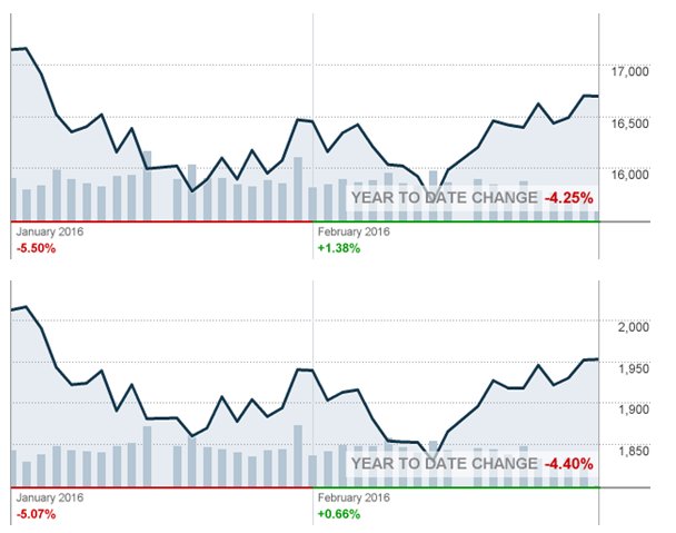 • The graphs below show the year-to-date movement in the DOW and the S&P respectively.