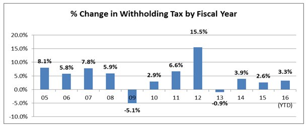 current cycle of economic recovery has posted below normal withholding gains.