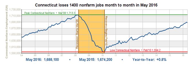 • Connecticut's unemployment rate was 5.7 percent in May; the national