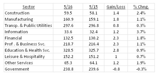 2016. Statewide nonagricultural employment gains now tally 13,900 (0.8 percent