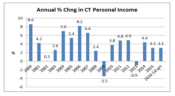 • Connecticut ranked 36th nationally in income growth for the 1st quarter of