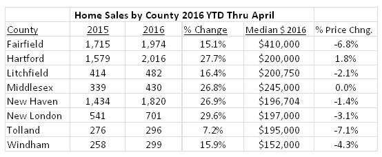 Connecticut recorded 2,340 single-family home sales in April 2016, the most