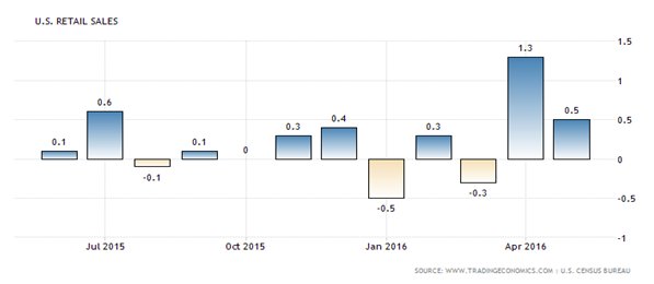 • Consumer spending data released this month has pointed to a continuation of solid household spending. The Commerce Department reported that May retail sales advanced 0.5 percent over April. Nine of 13 major categories showed increases in demand in May from the prior month. Gains were led by gasoline stations, on-line retailers and hobby and entertainment stores. Department stores and building supply and gardening stores posted declines. Sales for April were unrevised at a 1.3-percent gain, the strongest advance since March 2015.