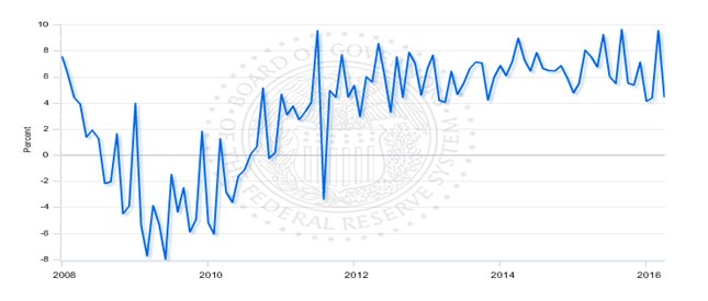 annualized growth in consumer credit in April. This follows a strong gain of 9.5