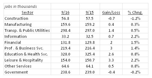 last 12 months ending in September, employment in the state has grown by