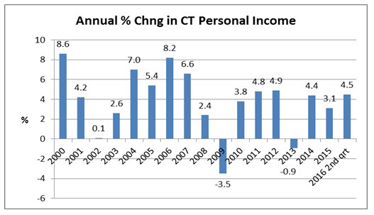 • Connecticut ranked 20th nationally in income growth for the second quarter of
