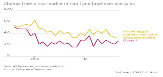• The Commerce Department reported that U.S. sales at retail stores, online platforms and at restaurants rose 0.6 percent in September, matching economists’ expectations for a rebound after sales fell 0.2 percent in August. Spending, excluding gas and autos, rose a more modest 0.3 percent, though that increase was the best posted over the last three months. Retail sales in September were up 2.7 percent from a year earlier. Sales for the third quarter as a whole rose 2.4 percent from the same period in 2015.