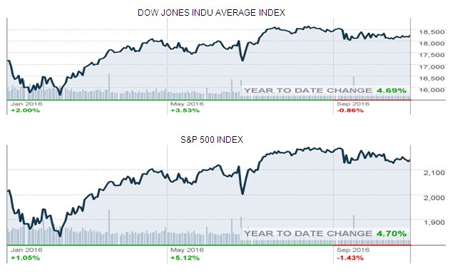 • The graphs below show the year-to-date movement in the DOW and the S&P respectively at this writing.