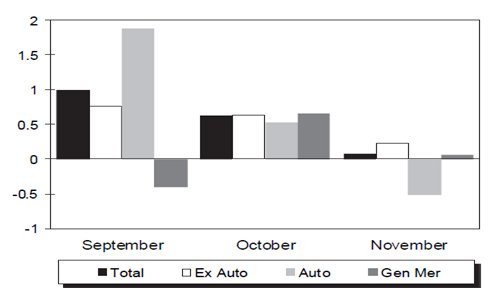 earlier, and general merchandise purchases fell 1.3 percent. Sales at non-store