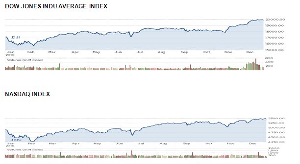 • The graphs below show the year-to-date movement in the DOW and the NASDAQ respectively at this writing.