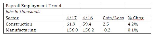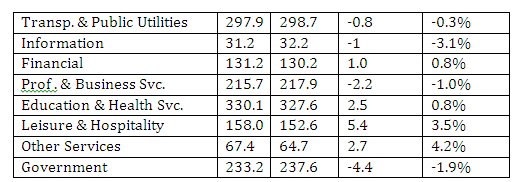 • The business payroll survey showed that the state lost 1,500 net jobs (-0.1