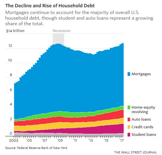 • Americans reduced their debts during and after the 2007-09 recession to an