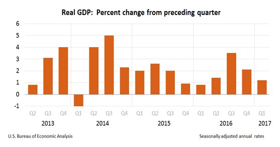 real GDP in the first quarter of 2017 grew at a 1.2-percent annual rate. In the