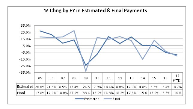 payments had a negative rate of growth in Fiscal Year 2016 and that has
